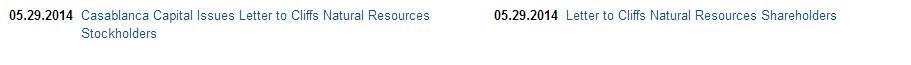 Also, on May 29, 2014, Casablanca posted the following links to each of the May 29 Press Release and May 29 Letter to www.FixCliffs.com: