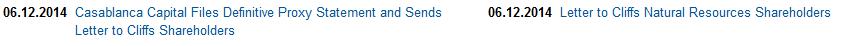 Also, on June 12, 2014, Casablanca posted the following links to each of the June 12 Press Release and June 12 Letter to www.FixCliffs.com: