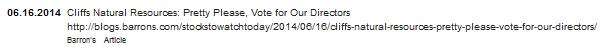 On June 16, 2014, Casablanca Capital LP and its affiliates posted the following additional reference to the "Media" page of www.FixCliffs.com: