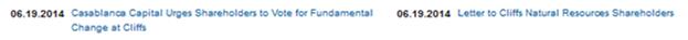 On June 19, 2014, Casablanca posted the following references to each of the June 19 Press Release and June 19 Letter to www.FixCliffs.com: