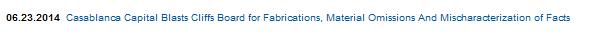 Also, on June 23, 2014, Casablanca posted the following reference to the June 23 Press Release to www.FixCliffs.com: